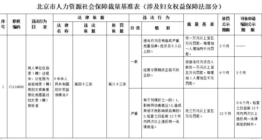 中新網(wǎng)2月3日電 北京市人力資源和社會保障局近日發(fā)布關于印發(fā)《北京市人力資源社會保障行政處罰裁量基準表(涉及婦女權益保障法部分)》的通知,其中明確,用人單位在招錄(聘)過程中,以性別為由拒絕錄(聘)用婦女或者差別化地提高對婦女錄(聘)用標準,或因結婚、懷孕、產(chǎn)假、哺乳等,降低女職工的工資和福利待遇等行為,最高可處五萬元罰款。(中新財經(jīng))