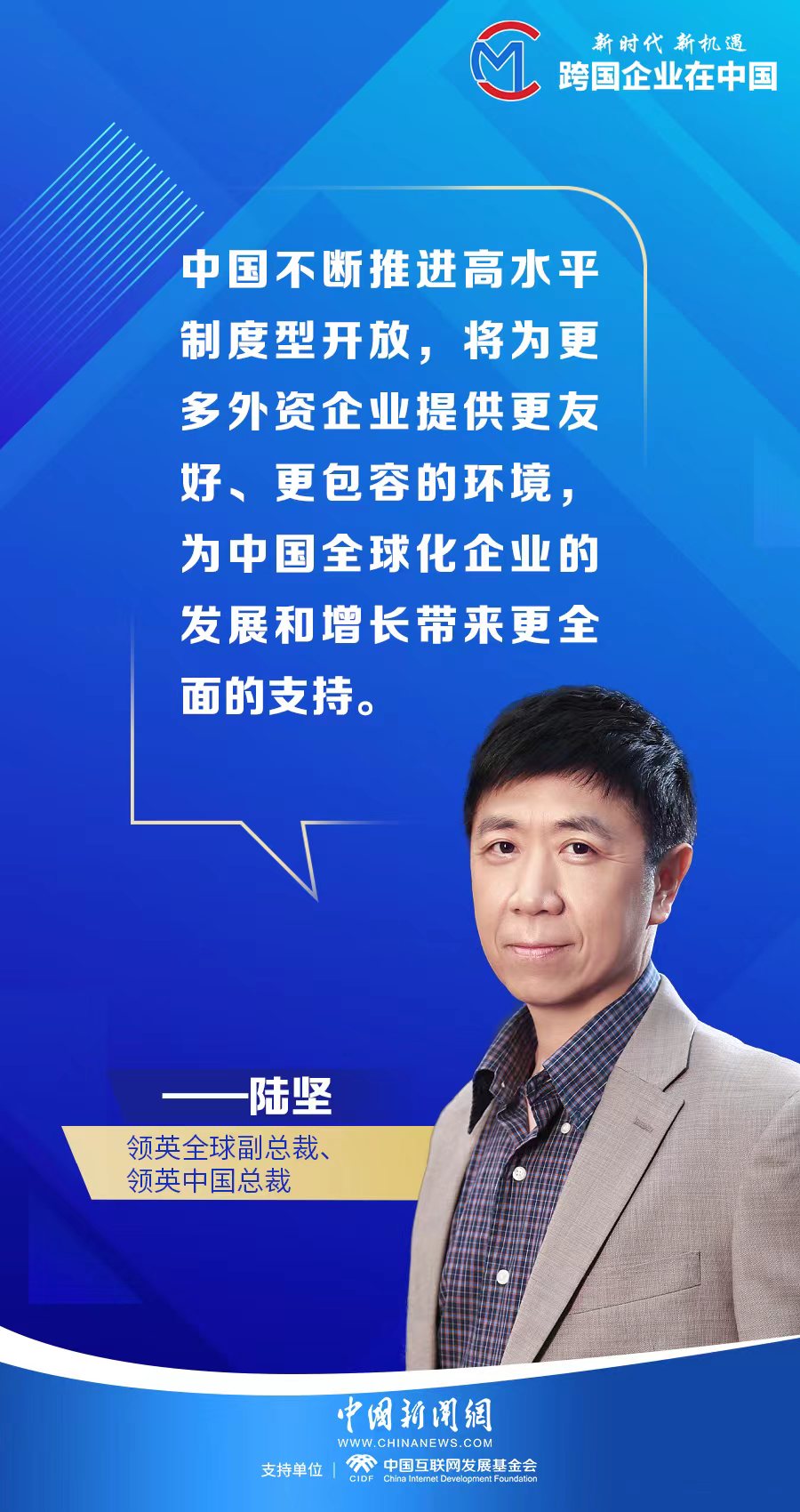 領(lǐng)英全球副總裁、領(lǐng)英中國總裁陸堅接受中新財經(jīng)專訪時表示,盡管全球經(jīng)貿(mào)環(huán)境變化給中國經(jīng)濟增長帶來不確定性,但依托領(lǐng)英的行業(yè)洞察及自身業(yè)務(wù),我見證到中國經(jīng)濟的“轉(zhuǎn)型動力”和“抗壓韌性”。同時,中國不斷推進更高水平制度型開放,將為外資企業(yè)提供更友好、更包容的環(huán)境。