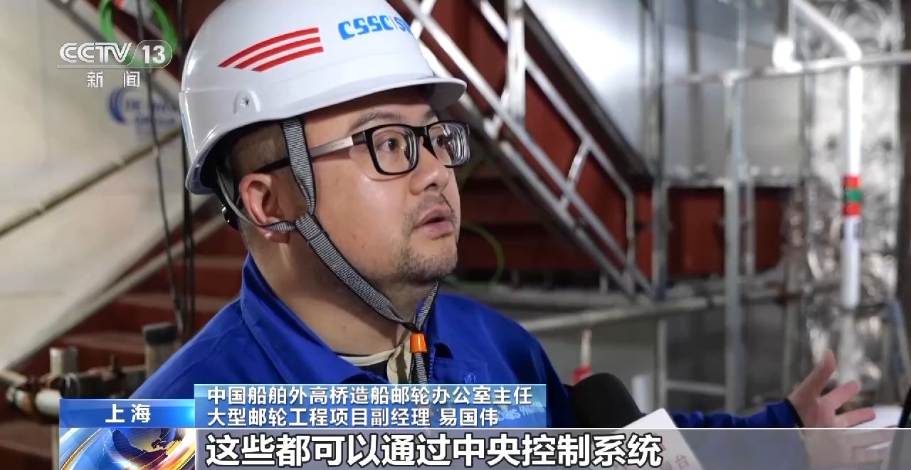 中國(guó)船舶外高橋造船郵輪辦公室主任 大型郵輪工程項(xiàng)目副經(jīng)理 易國(guó)偉:電纜要提供控制信號(hào),這條船它也是智能化的一條船舶,所有上面用的娛樂設(shè)施、照明設(shè)施,都可以通過中央控制系統(tǒng)來控制。