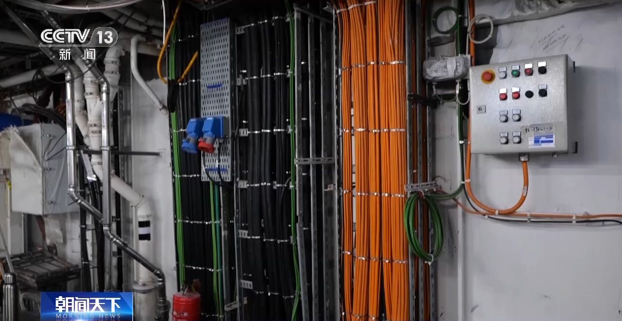 總臺(tái)央視記者 李寧:如何確保這樣一艘海上巨無霸的正常運(yùn)行,靠的就是我身后的這些電纜,這些電纜就好比這艘船上的神經(jīng)和血管,它的總長(zhǎng)度超過4300公里,比哈爾濱到三亞的距離還要遠(yuǎn)。