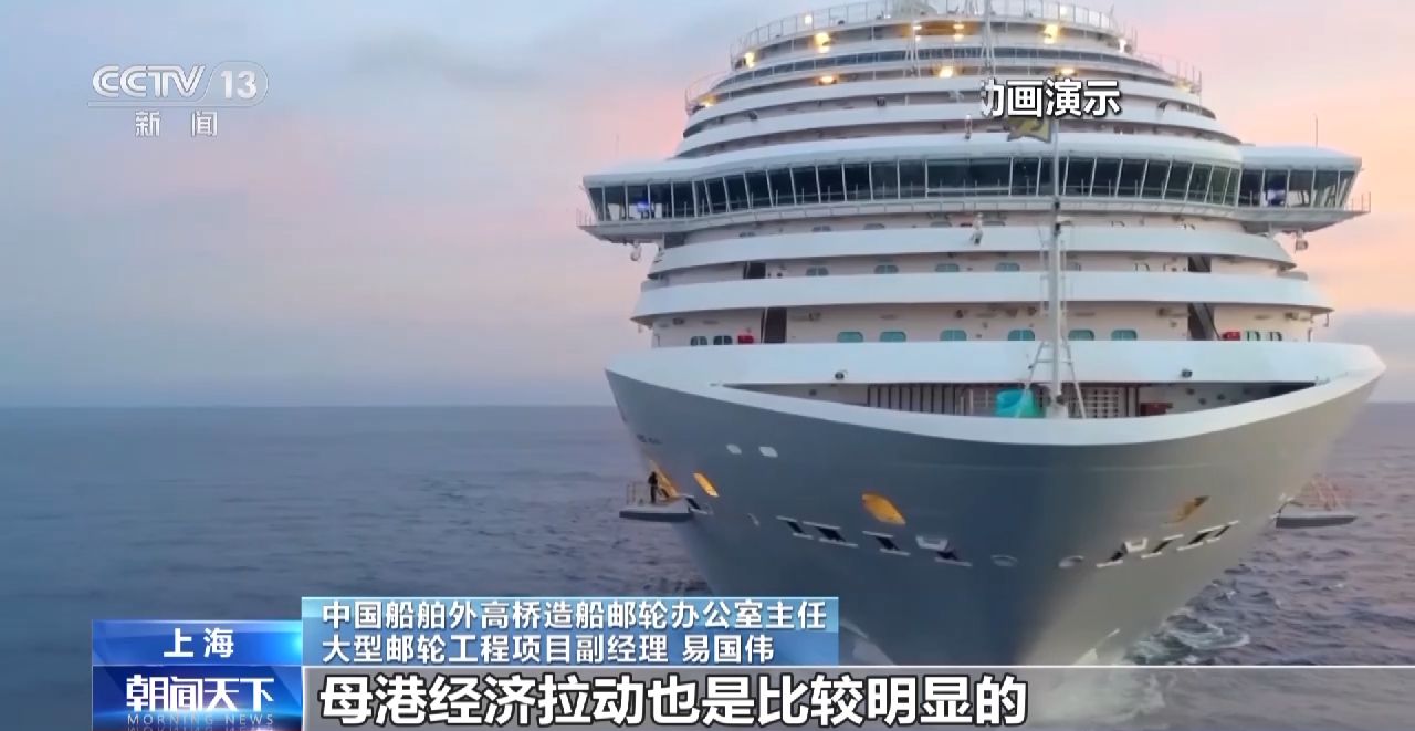 中國(guó)船舶外高橋造船郵輪辦公室主任 大型郵輪工程項(xiàng)目副經(jīng)理 易國(guó)偉:顧客在登船和下船以后,在當(dāng)?shù)匾矔?huì)進(jìn)行對(duì)應(yīng)的消費(fèi)和娛樂,所以對(duì)當(dāng)?shù)馗劭诘哪父劢?jīng)濟(jì)拉動(dòng)也是比較明顯的。中國(guó)的郵輪產(chǎn)業(yè)如果按照正常的發(fā)展速度,預(yù)估在2035年可以達(dá)到一年5000億元的產(chǎn)值。
