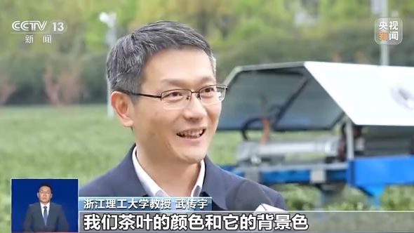 浙江理工大學教授 武傳宇:那么這個最大的問題是在于,我們茶葉的顏色和它的背景色幾乎是一樣的,它沒有明顯區(qū)分。另外一個的話呢,這個目標是非常小的,我們最小的采摘的一個點的話呢,只有2個毫米左右。還有一個的話呢,我們茶園的這個綠地,有可能在山坡上,在平整地上的相對會少一些。
