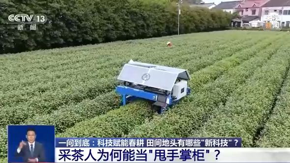 農(nóng)業(yè)科技的運用打開了種田人的新空間,我們再去采茶園看看。眼下,正是春茶采摘旺季,各地的茶農(nóng)都在忙著采摘茶芽。不過您知道嗎?現(xiàn)在采茶人也能當“甩手掌柜”了。為了幫助茶農(nóng)提產(chǎn)增收,當?shù)芈?lián)合高校機器人團隊,經(jīng)過不斷嘗試、改進,研發(fā)出了自主識別茶樹芽葉的智能采茶機器人。跟隨記者的鏡頭,一起去浙江杭州的茶園里看看。