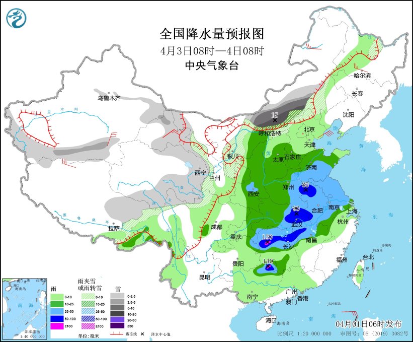 明天開(kāi)始,大范圍雨雪將鋪展開(kāi)來(lái),內(nèi)蒙古河套地區(qū)、西藏東部、西北地區(qū)東部、華北南部和西部、黃淮西部、江漢、江南北部、西南地區(qū)東北部等地部分地區(qū)有中到大雨,其中,河南南部、湖北北部和南部、湖南北部等地部分地區(qū)有暴雨或大暴雨。預(yù)計(jì)本輪雨雪天氣過(guò)程主要出現(xiàn)時(shí)段在4月2日至4日。