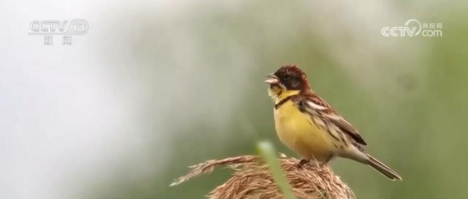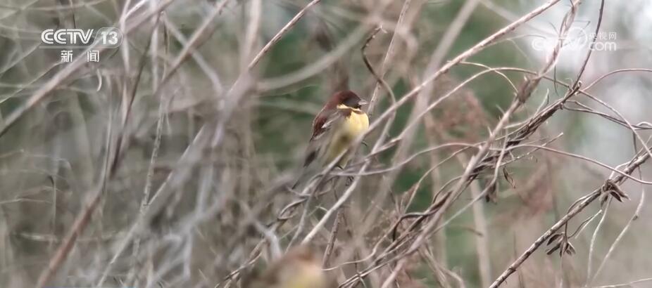 馬洲島長江生物多樣性保護科學觀測研究站工作人員 魏慧玉:島上有林地、農(nóng)田、濕地等多種生境,這種適宜的生態(tài)環(huán)境就為黃胸鹀提供了重要的停歇點和補給站,因此今年黃胸鹀又“組團”出現(xiàn)了。(央視網(wǎng))