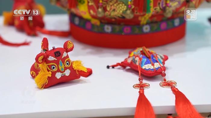 在江蘇展區(qū),一位正在做針線活的白發(fā)老人引人注目,她是江蘇省級(jí)非遺項(xiàng)目傳承人王秀英。王奶奶做的徐州香包名字叫做針棒,有著豐厚的文化蘊(yùn)涵和文化價(jià)值,入選第一批國家級(jí)非物質(zhì)文化遺產(chǎn)擴(kuò)展項(xiàng)目名錄。這次和王奶奶一同來參展的還有她的孫女孫歌堯。在學(xué)習(xí)傳統(tǒng)工藝的同時(shí),孫歌堯大膽創(chuàng)新,嘗試融入更多技法和材質(zhì)。