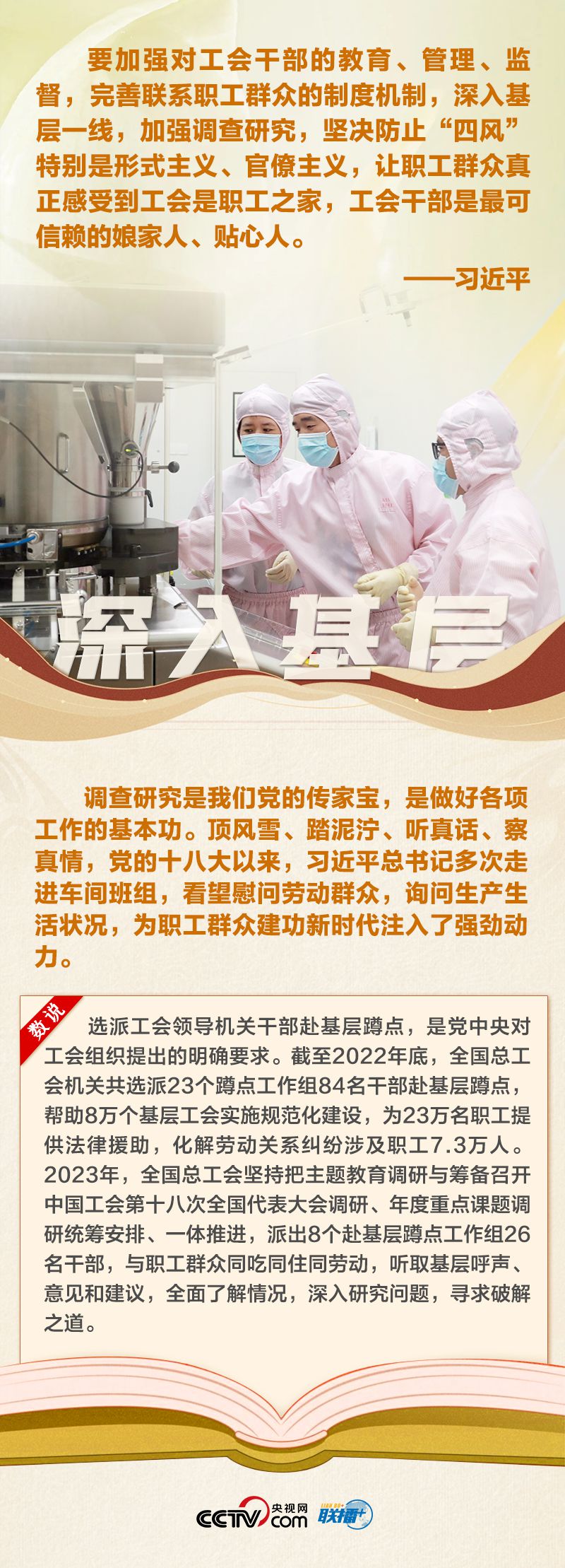 工人階級是我們黨最堅實最可靠的階級基礎,工運事業(yè)是黨的事業(yè)的重要組成部分,工會工作是黨治國理政的一項經(jīng)常性、基礎性工作。黨的十八大以來,習近平總書記多次出席勞動者活動,同普通工人談心,給勞?;匦牛瑸閺V大勞動群眾煥發(fā)工人階級主人翁精神注入強勁動力。