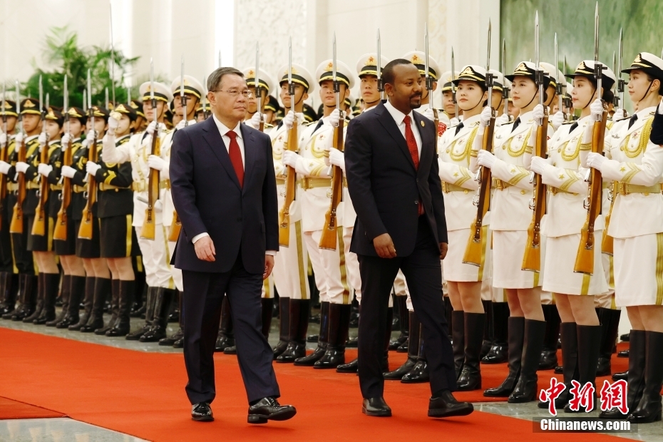 會談前,李強在人民大會堂北大廳為阿比舉行歡迎儀式。