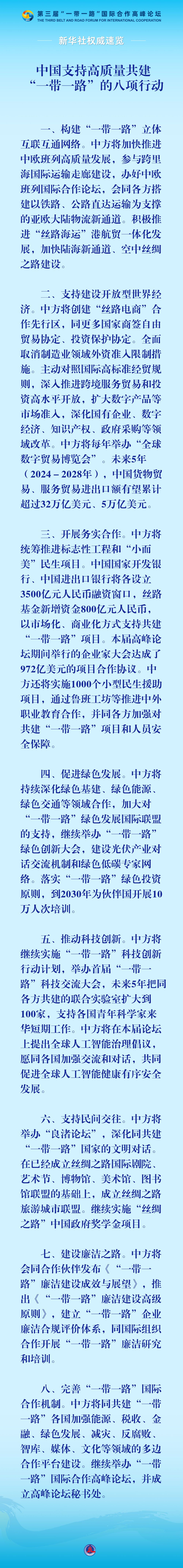 新華社權(quán)威速覽|習(xí)近平宣布中國支持高質(zhì)量共建“一帶一路”的八項(xiàng)行動