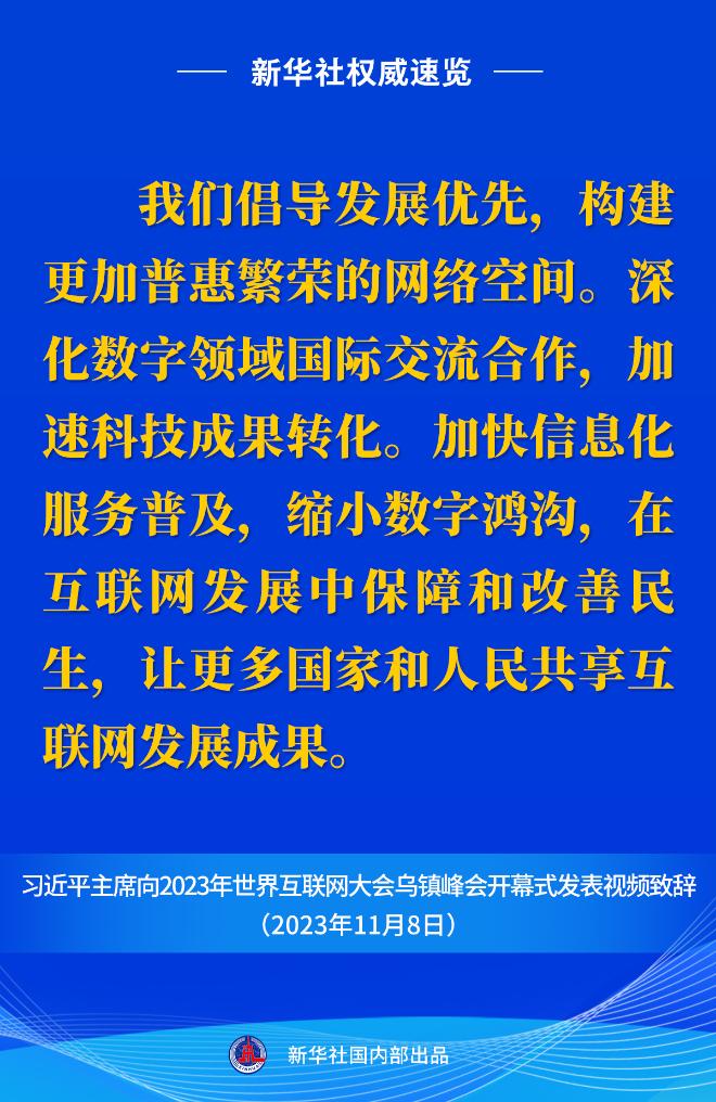 新華社權(quán)威速覽丨習(xí)近平主席向2023年世界互聯(lián)網(wǎng)大會烏鎮(zhèn)峰會開幕式視頻致辭金句