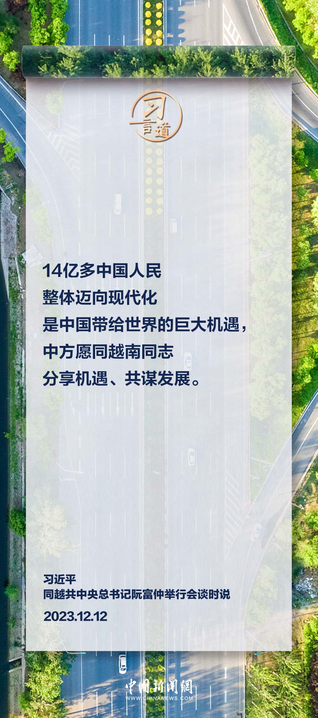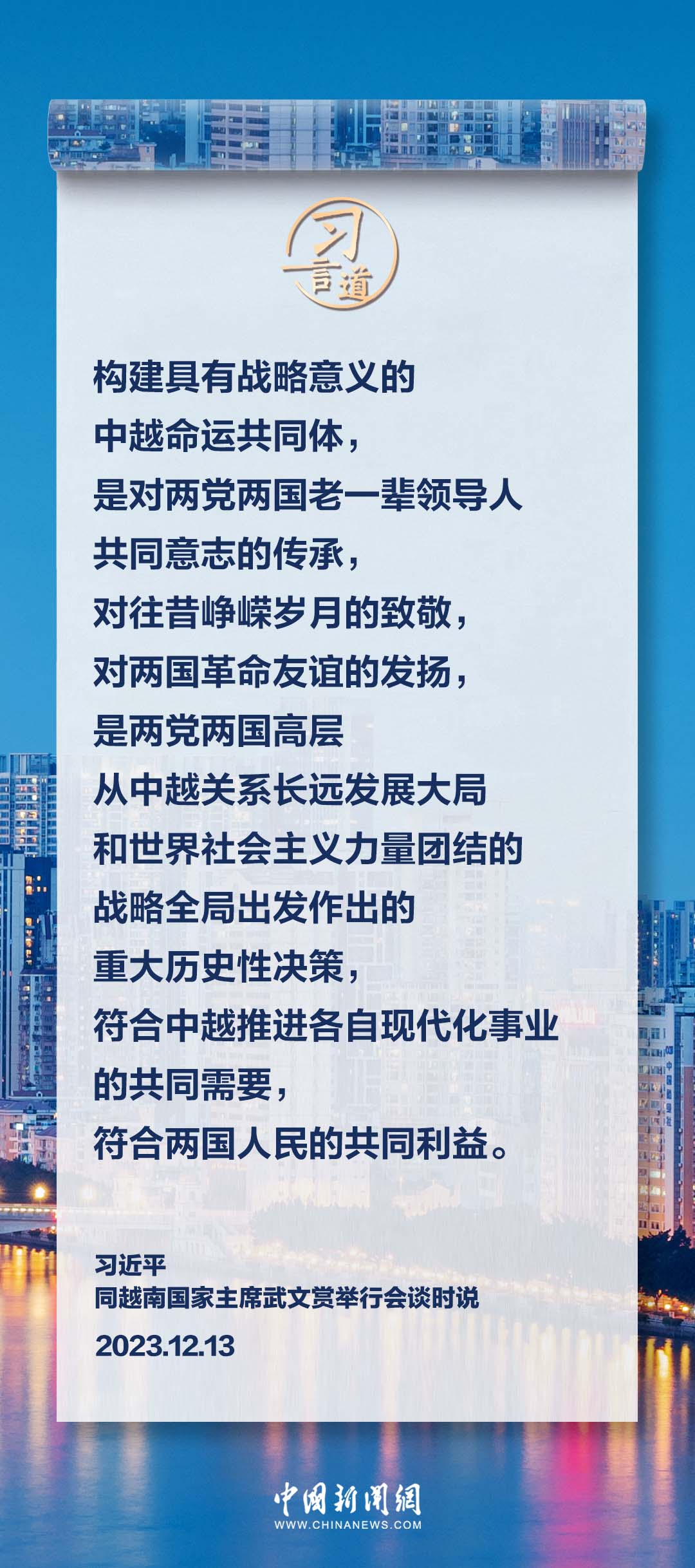 應(yīng)越南共產(chǎn)黨中央委員會(huì)總書記阮富仲、越南社會(huì)主義共和國(guó)主席武文賞邀請(qǐng),中共中央總書記、國(guó)家主席習(xí)近平于12月12日至13日對(duì)越南進(jìn)行國(guó)事訪問。訪問期間,習(xí)近平指出——