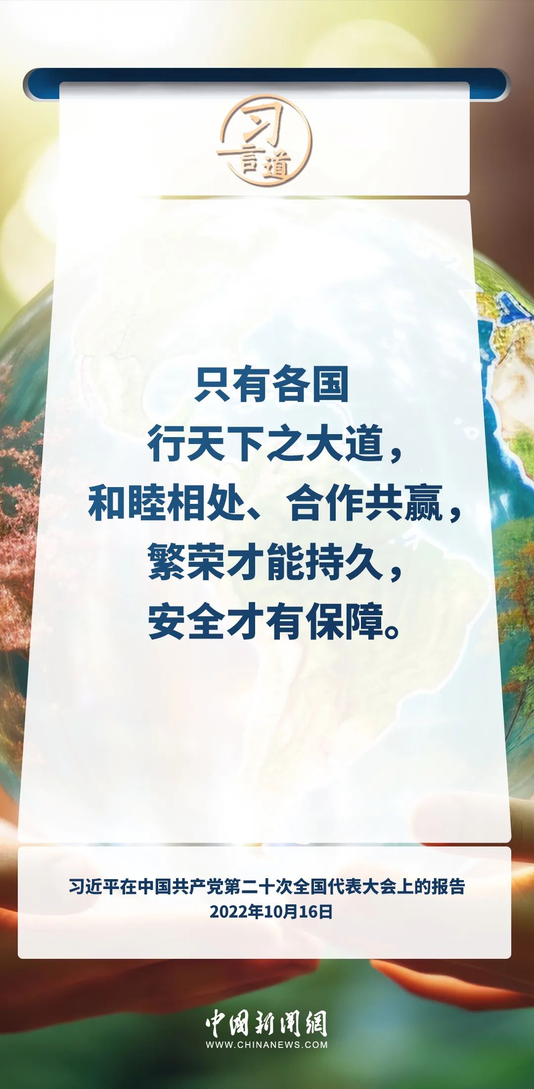 世界好,中國才會好;中國好,世界會更好。習(xí)近平主席在多個重要場合對人類命運共同體理念進行全面深刻論述,強調(diào)開放包容、合作共贏才是人間正道。