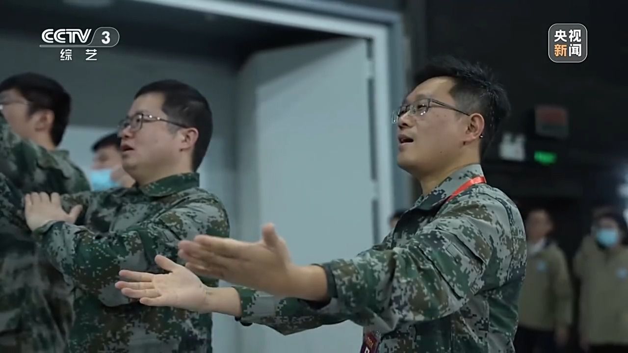 南京理工大學(xué)機(jī)械工程學(xué)院火箭導(dǎo)彈發(fā)射工程系主任 任杰:你看我們穿的這個服裝跟國防是相關(guān)的,而且又是演的貝塔這個角色,都應(yīng)該為它去增添光彩。我們在走廊里面不在乎大家的目光,雖然文藝表演不是我們的專長,但是我們拿出真誠的態(tài)度,因為回想小時候看動畫片多幸福,小時候蹦蹦跳跳唱的時候,要把情緒傳染給大家。