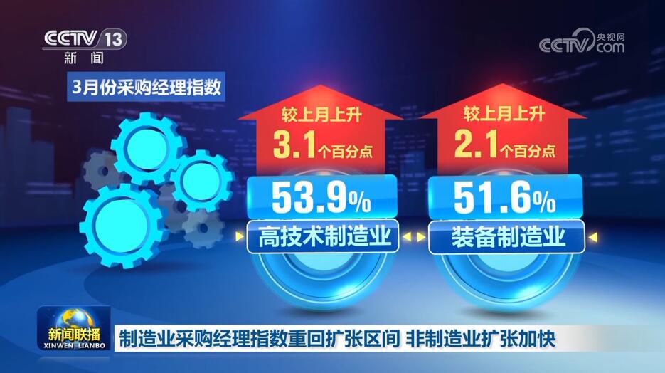 央視網(wǎng)消息:3月31日,《新聞聯(lián)播》報道了3月份中國采購經(jīng)理指數(shù)、各地重大工程建設,以及生態(tài)保護、春耕等領域取得的新成績、新成果,各行各業(yè)奮力拼搏,匯聚成向上的蓬勃力量,繪就出中國經(jīng)濟萬千氣象。