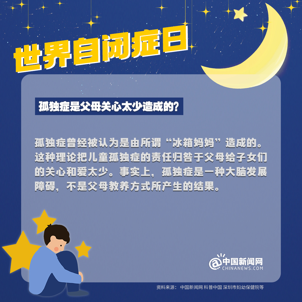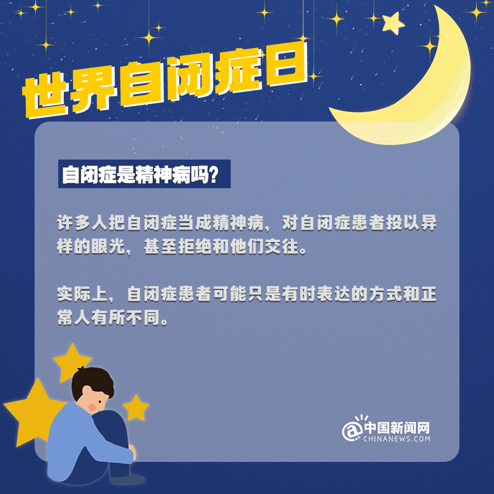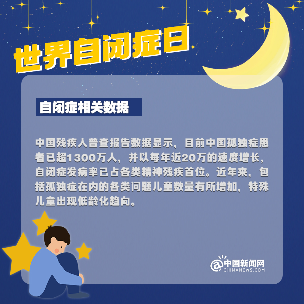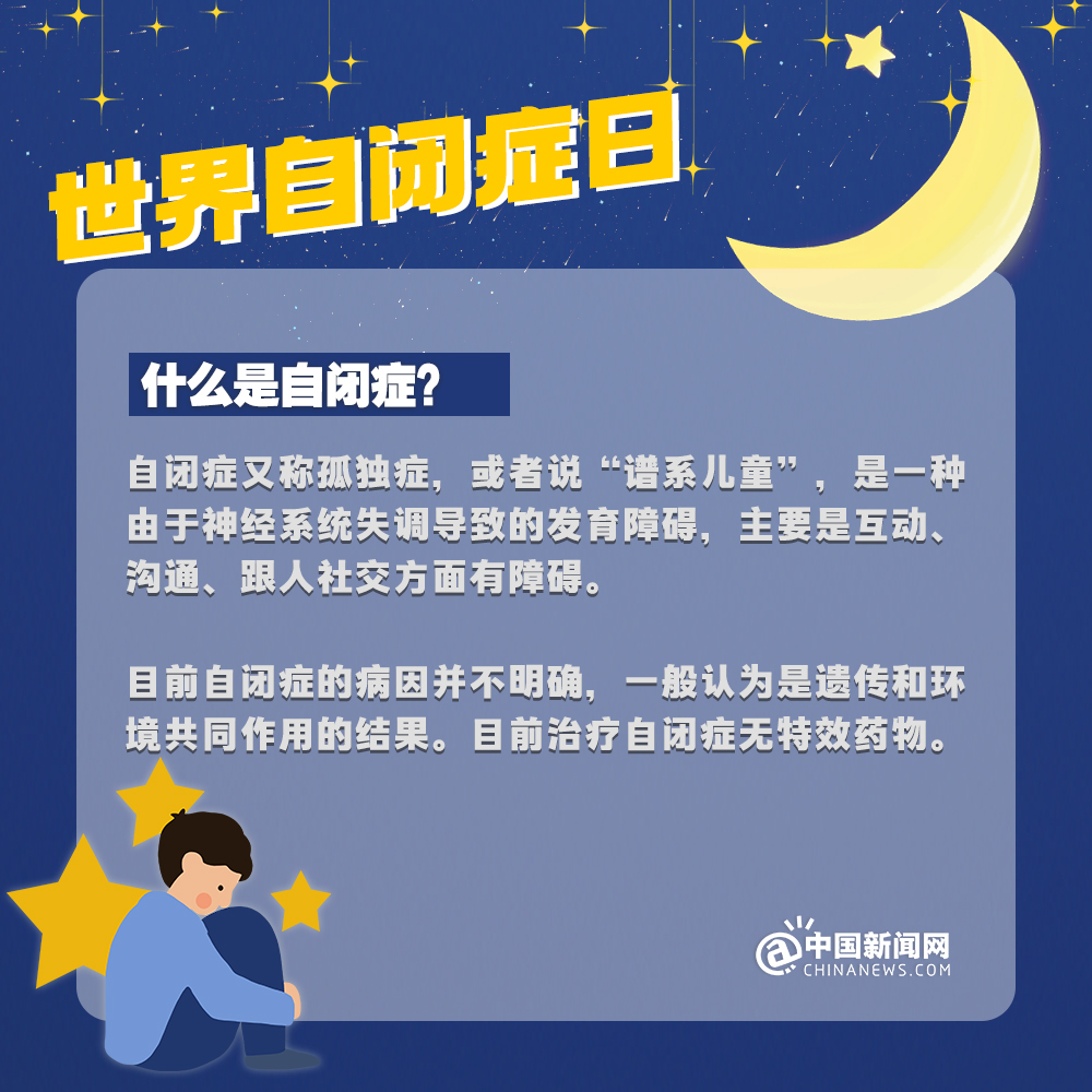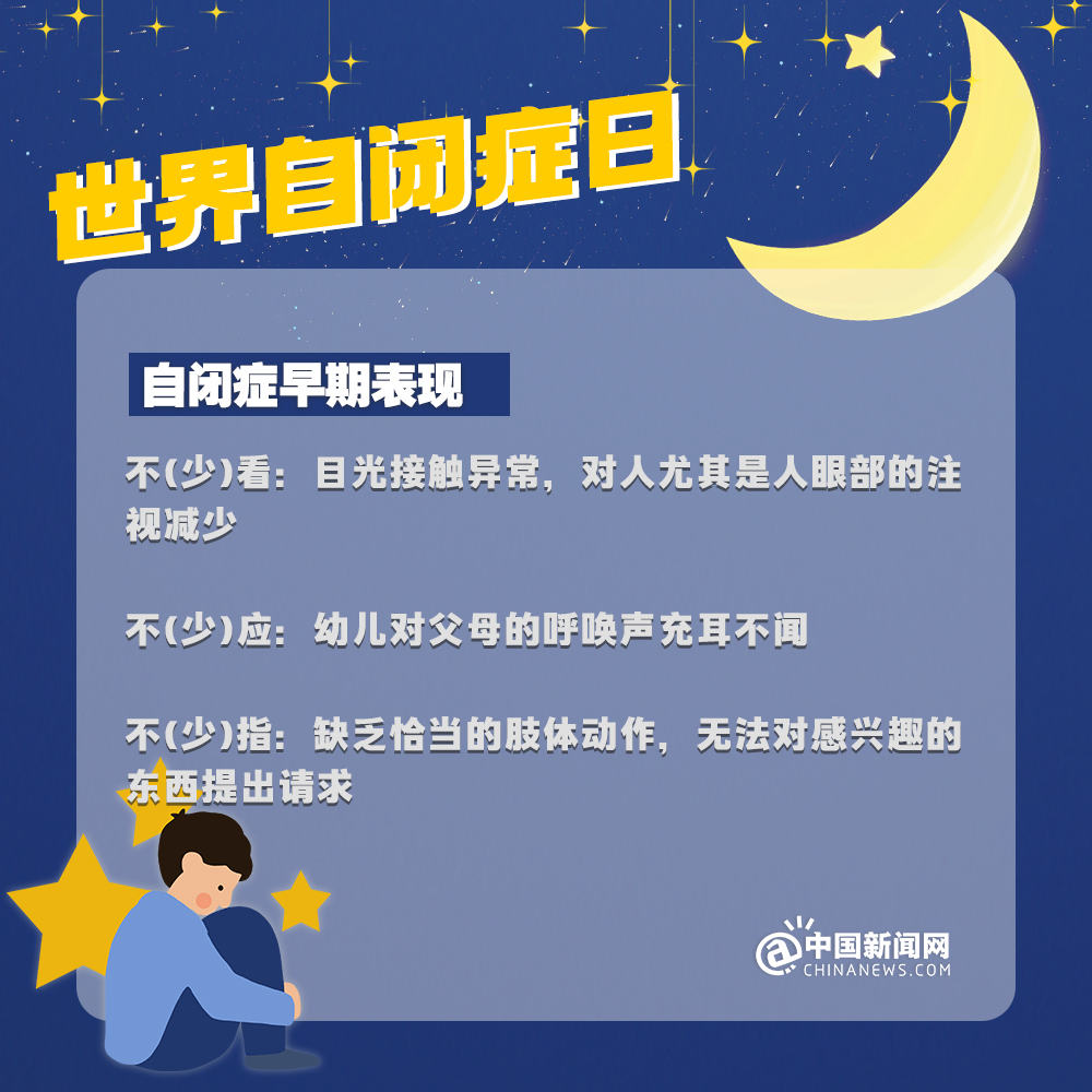 中新網(wǎng)4月2日電 自閉癥兒童,也被稱為“來自星星的孩子”,他們的情緒難以捉摸,他們的思想難以表達,他們像星星一樣孤獨地游離在宇宙中……有數(shù)據(jù)顯示:目前中國自閉癥患者已超1300萬人。自閉癥有哪些認知誤區(qū)?該如何早期識別自閉癥?詳情↓關(guān)愛自閉癥患者,讓星星的孩子有愛不孤單!