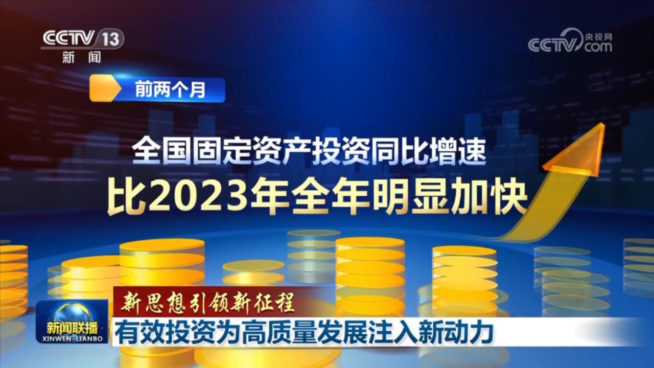 央視網消息(新聞聯播):習近平總書記強調,要完善擴大投資機制,拓展有效投資空間。今年開年以來,服務高質量發(fā)展成為擴大有效投資的重要著力點,投資規(guī)模持續(xù)增長,投資結構質量持續(xù)提升,助力中國經濟實現平穩(wěn)開局。