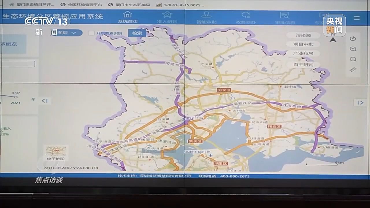 福建廈門市生態(tài)環(huán)境局環(huán)評處處長 詹源:我們在系統(tǒng)里面融入了國土空間、市政設(shè)施、產(chǎn)業(yè)布局以及生態(tài)環(huán)境,一共有207個矢量圖層,在這里面可以查看到空間信息、污水管網(wǎng)設(shè)置、產(chǎn)業(yè)布局規(guī)劃等信息。同時,我們還梳理了10萬多條準(zhǔn)入條件,形成了分區(qū)管控的智慧內(nèi)核。