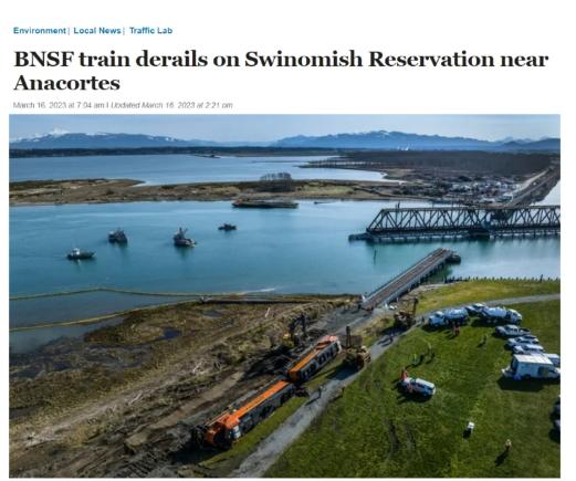 據(jù)報(bào)道,華盛頓州生態(tài)廳16日早在社交媒體推特上稱,一列屬于北美貨運(yùn)鐵路公司BNSF Railway的火車當(dāng)天凌晨在該州斯卡吉特縣脫軌。導(dǎo)致約5000加侖柴油被泄漏在事發(fā)地點(diǎn)Swinomish保護(hù)區(qū)的護(hù)堤上,大部分泄漏在陸地一側(cè)。