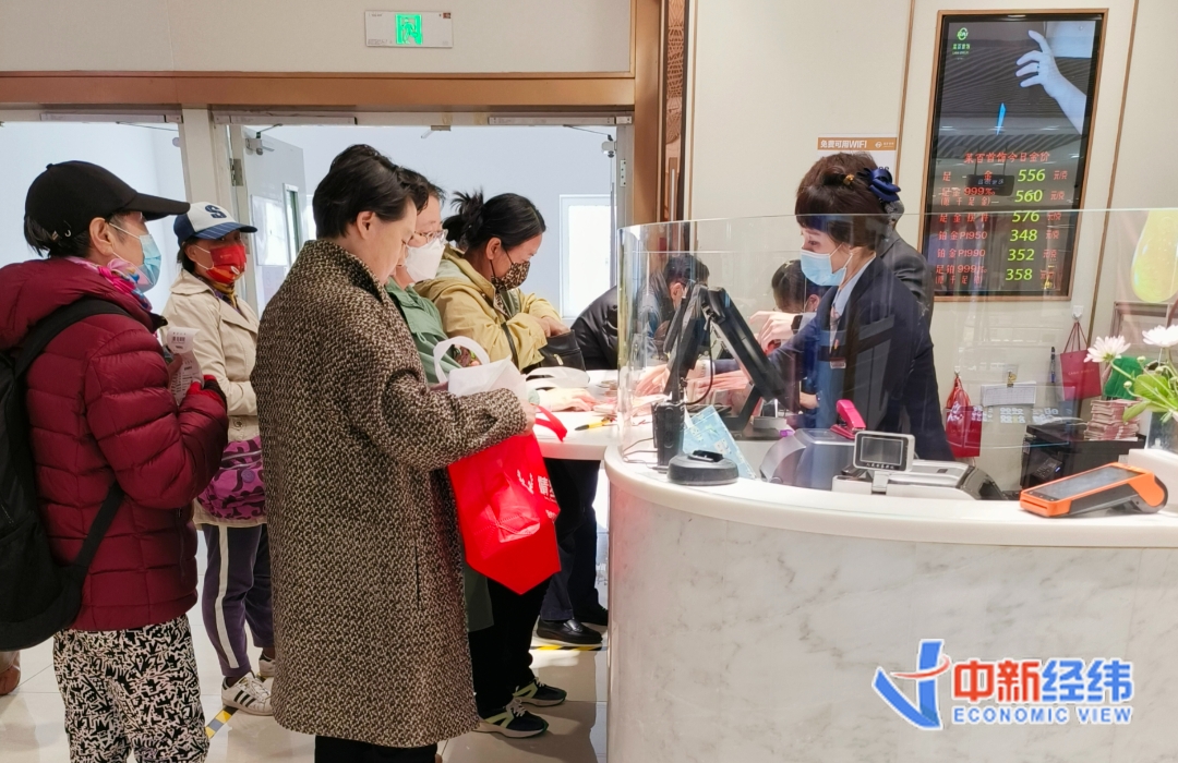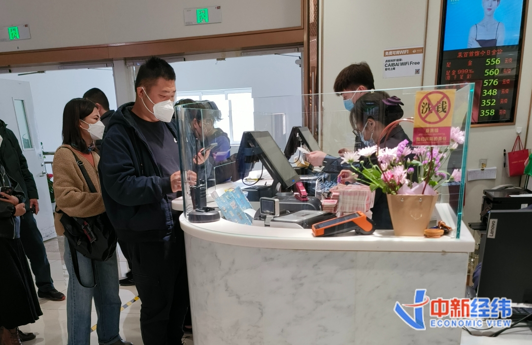 中新經(jīng)緯3月21日電 (馬靜 李自曼 魏薇)“唰唰唰……”兩臺點鈔機(jī)的聲響此起彼伏,幾位大媽從布口袋里拿出整整齊齊的幾疊現(xiàn)金放到收銀臺面上,三位收銀員正忙著點鈔、核對小票。這是3月21日早晨十點半左右,北京菜市口百貨四樓投資金條柜臺前的一幕。