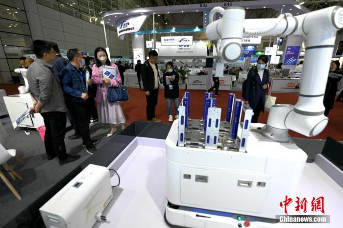 資料圖:3月9日,2023中國(福州)工業(yè)博覽會(huì)在福州海峽國際會(huì)展中心舉辦,各種機(jī)器人自動(dòng)化設(shè)備吸人眼球。