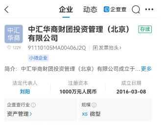 中新財(cái)經(jīng)還以“華商財(cái)團(tuán)”為關(guān)鍵詞通過(guò)企查查APP進(jìn)行搜索,出現(xiàn)“中匯華商財(cái)團(tuán)投資管理(北京)有限公司”、“中信華商財(cái)團(tuán)國(guó)際投資集團(tuán)有限公司”兩項(xiàng)最為相關(guān)的結(jié)果。前者為注冊(cè)資本1000萬(wàn)元人民幣的小微企業(yè),后者則被標(biāo)注“已告解散”。