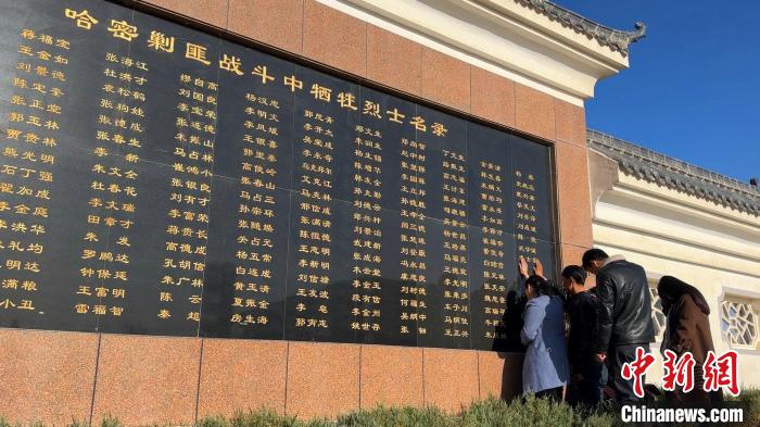 清明節(jié)前夕,在新疆哈密烈士陵園哈密剿匪戰(zhàn)斗中犧牲烈士名錄墻前(以下簡(jiǎn)稱“英名墻”),竇來強(qiáng)、竇剛強(qiáng)、竇瑞琴、竇調(diào)蕊、焦霞霞五位從甘肅天水趕來的年輕人,撫摸著“英名墻”上其中一個(gè)名字,放聲痛哭。
