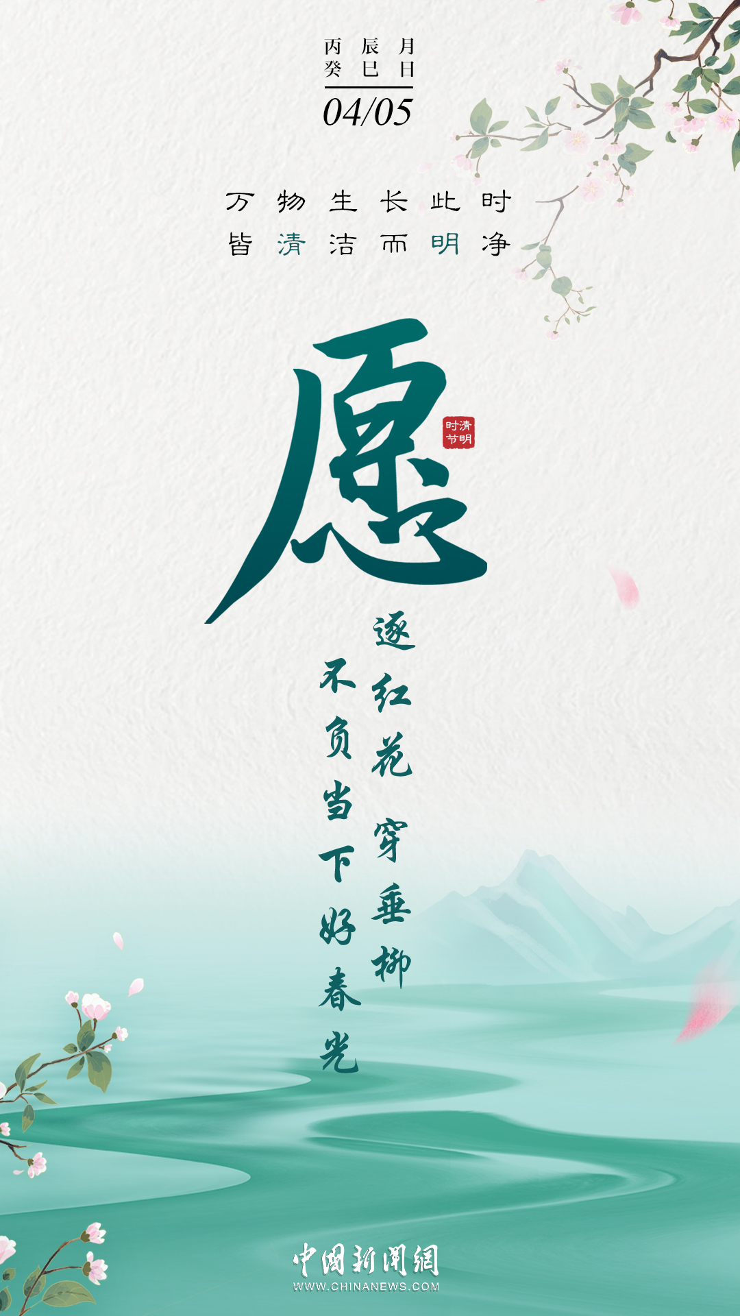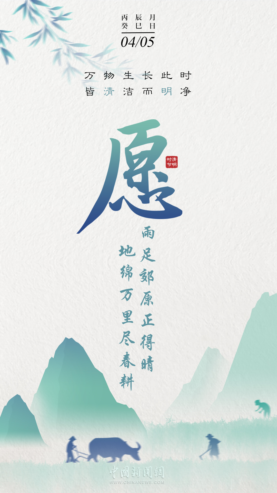 萬物生長此時,皆清潔而明凈,故謂之清明。桐花開,虹始見,草長鶯飛時,攜好友二三逐紅花,穿垂柳,紛紛春雨和縷縷清風化盡了路上行人的哀愁事。今日清明,愿萬里氣清景明,你我心清目明。