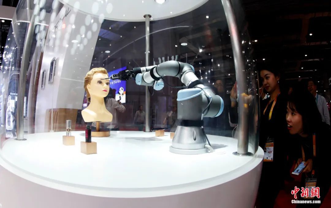 進(jìn)博會(huì)上,展商正在展示機(jī)器人化妝技術(shù)。湯彥俊攝