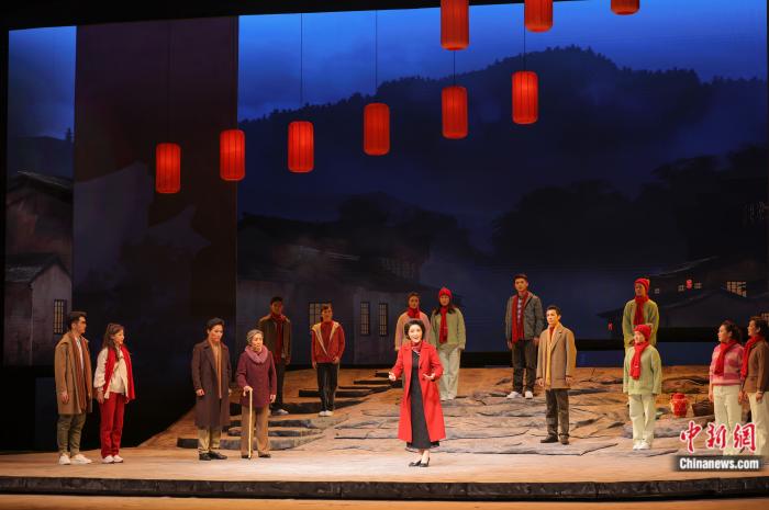 “秀山麗水給我們提供了豐富的創(chuàng)作素材和視覺沖擊,舞臺上我們在尾聲進(jìn)行了再創(chuàng)作,把綠水青山帶來的視覺震撼進(jìn)行了戲劇表達(dá)。我們不僅要呈現(xiàn)自然界的好風(fēng)光,更要呈現(xiàn)人們心靈的綠水青山?!睂?dǎo)演楊小青說。
