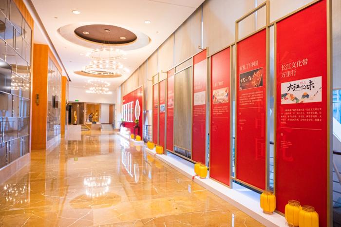 在賡續(xù)傳承板塊,五糧液借酒店中式大堂營造千年酒文化沉浸式氛圍感,以川西古建筑風(fēng)格打造嘉賓簽到處,風(fēng)格鮮明,不拘一格,墻上循環(huán)播放的五糧液品牌宣傳片,深入人心;由九龍壇、501五糧液、經(jīng)典五糧液、第八代五糧液以及和美中國、五福熊貓等重磅產(chǎn)品合力打造的產(chǎn)品展臺位于酒店大堂C位中央,如眾星捧月般奪人眼球;不斷旋轉(zhuǎn)的展臺,確保觀展者可以從不同角度欣賞產(chǎn)品,提升產(chǎn)品觀賞性;四周環(huán)繞的展柜,展示著從第一代到第八代五糧液,不斷賡續(xù)傳承的品牌發(fā)展歷程,娓娓道來每一款時代經(jīng)典背后濃墨重彩的五糧液發(fā)展篇章。