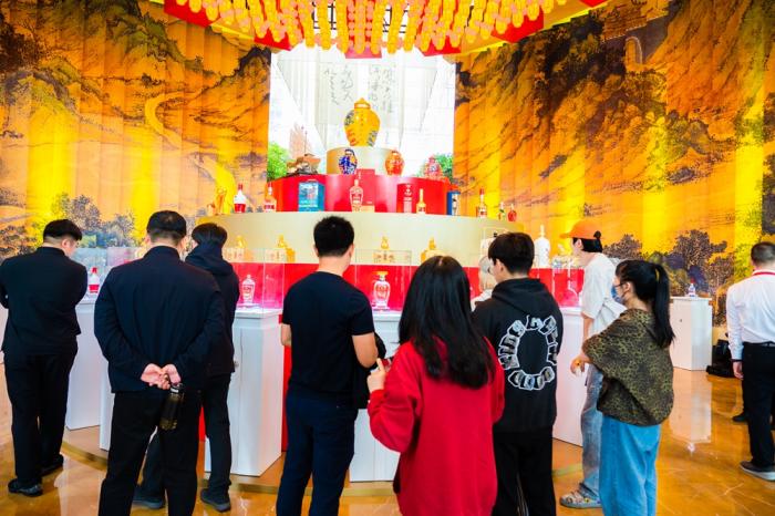 展廳現(xiàn)場,五糧液還設(shè)置了釀造工藝區(qū)、五糧濃香展廳、圣山展廳、五糧液酒廊休閑洽談區(qū)以及濃五酒館等。其中,依托酒店原有外立面精心搭建的釀造工藝區(qū),典雅大氣,令觀展客商們在融融春意中駐足徜徉,深刻了解一杯“大國濃香”的誕生奇旅,感受歲月濃香的獨特魅力,陶醉于和美五糧的品牌魅力,折服于大國濃香的品牌自信。值得一提的是,本次五糧液酒店展更為注重服務(wù)性和體驗感,傾力打造的休閑空間和品牌長廊,不僅方便全國各地經(jīng)銷商前來洽談業(yè)務(wù),也方便近距離感受五糧液品牌文化。