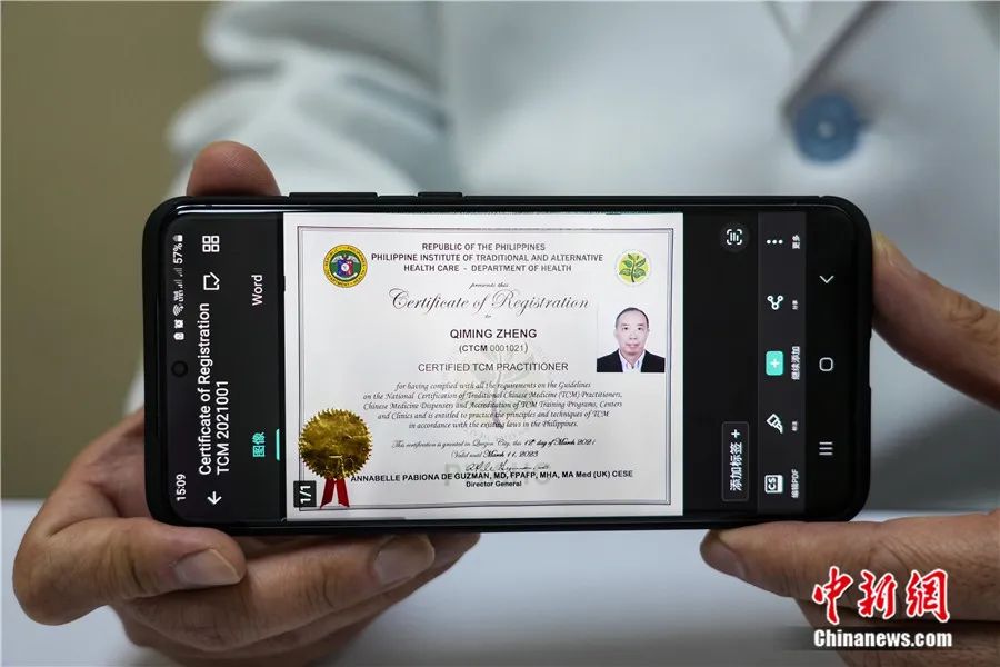 鄭啟明:2021年6月,菲律賓衛(wèi)生部授予我該國(guó)首張中醫(yī)執(zhí)業(yè)資格注冊(cè)證書,這標(biāo)志著中醫(yī)在菲律賓獲得合法執(zhí)業(yè)資格,意味著中醫(yī)在菲未來的發(fā)展迎來新的契機(jī)。