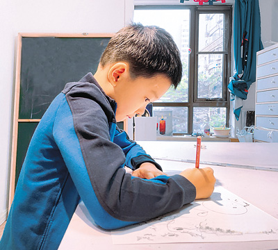 在美術老師幫助下,張正昊不斷修改完善草圖,最終繪制完成“保護地球大家園”海報,同時還設計了野生動物勛章和植物書簽。