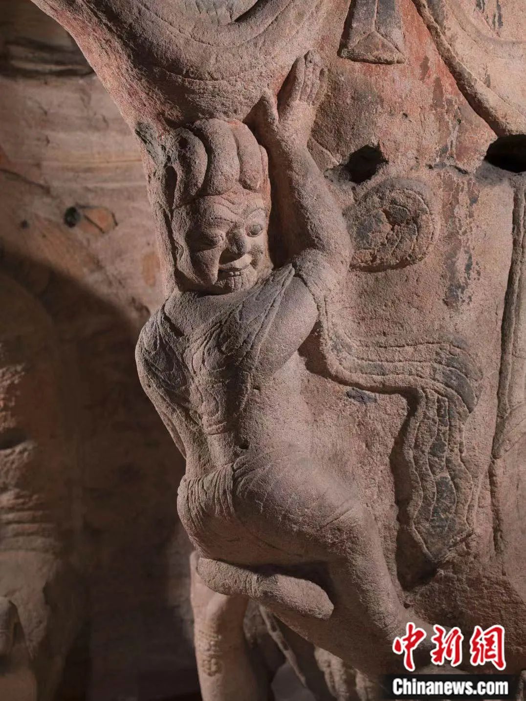 第8窟后室北壁上層帷幕東側(cè)飛行夜叉。云岡研究院供圖