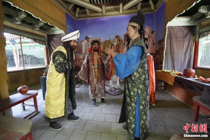 甘肅蘭州五泉山蠟像館內(nèi)展示“粟特商人”的蠟像場景。楊艷敏 攝