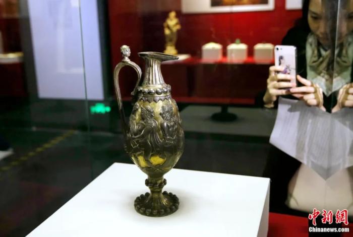 民眾在西安陜西歷史博物館參觀展出的波斯薩珊王朝胡瓶。張遠(yuǎn) 攝
