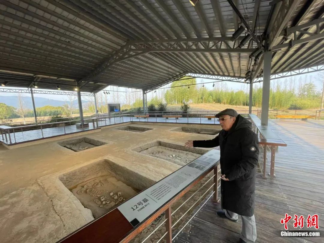 王明達在良渚遺址公園內(nèi)回憶當(dāng)年的發(fā)掘故事。張煜歡攝