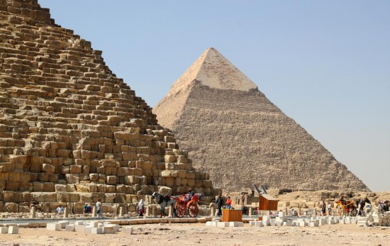 5月1日,游客在埃及吉薩金字塔群景區(qū)游覽。新華社記者隋先凱攝
