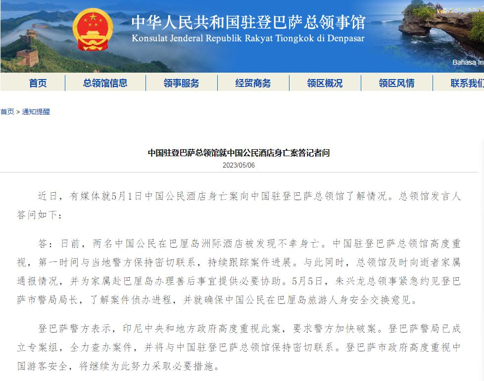 - 中國駐登巴薩總領(lǐng)館就中國公民酒店身亡案答記者問