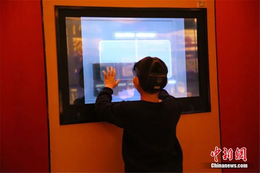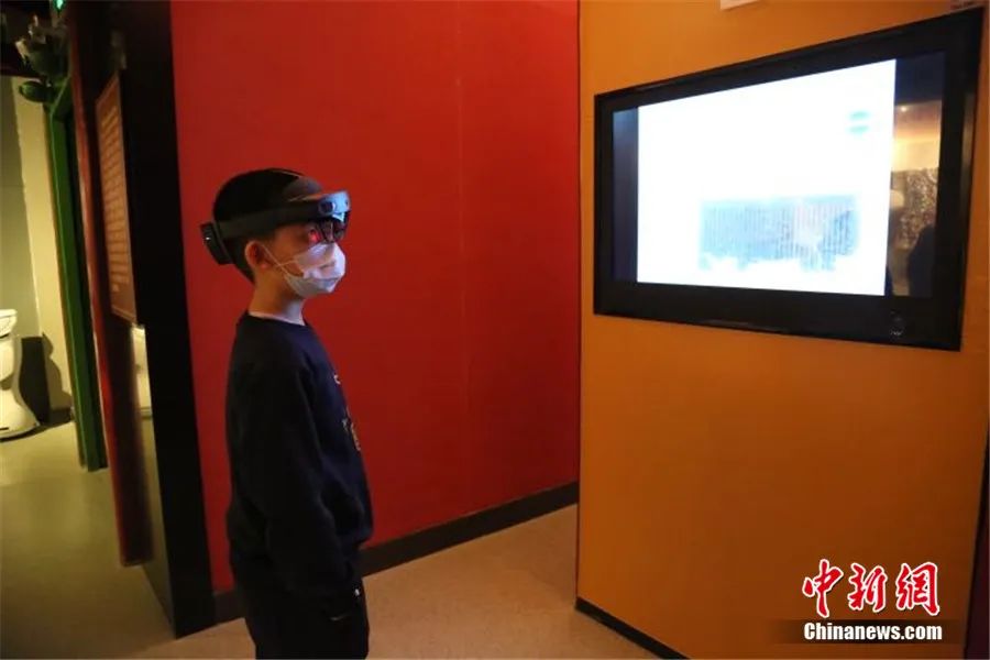 新疆哈密市小朋友利用MR眼鏡對彌勒會見記進(jìn)行參觀體驗(yàn)。新疆哈密市博物館 供圖