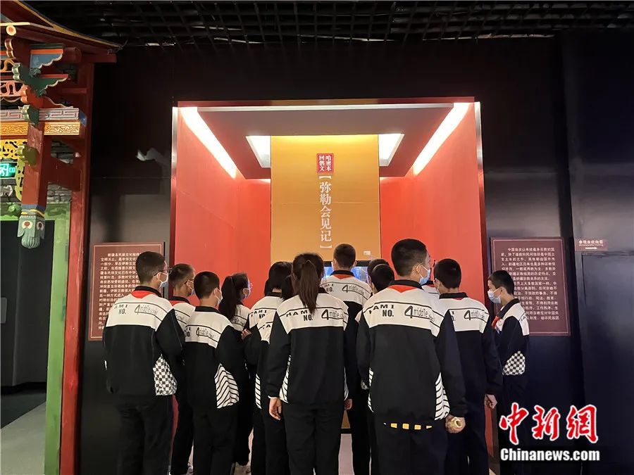 運(yùn)用現(xiàn)代科技手段展示的彌勒會見記受到學(xué)生的關(guān)注和喜愛。新疆哈密市博物館 供圖