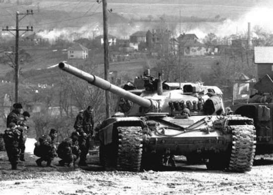 這是1999年3月24日,南聯(lián)盟軍隊(duì)的一輛坦克在科索沃省德雷尼察地區(qū)待命,隨時準(zhǔn)備戰(zhàn)斗。新華社發(fā)