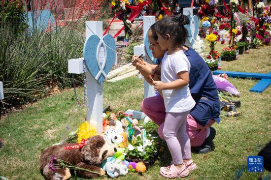 5月8日,在美國得克薩斯州達拉斯以北城鎮(zhèn)艾倫的購物中心槍擊事件現(xiàn)場附近,一名小朋友準備在受害者紀念板上寫下哀思。達拉斯以北城鎮(zhèn)艾倫的一家購物中心6日發(fā)生槍擊事件,造成包括槍手在內(nèi)的9人死亡、7人受傷。新華社發(fā)(田丹攝)