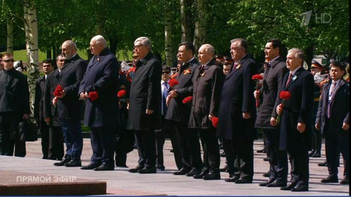 講話期間,普京宣布為紀念在衛(wèi)國戰(zhàn)爭中逝去的軍人和親人默哀一分鐘,閱兵現(xiàn)場肅立默哀。