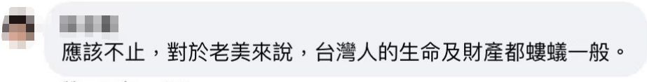 “對于老美來說,臺灣人的生命及財(cái)產(chǎn)都螻蟻一般?!?/p>