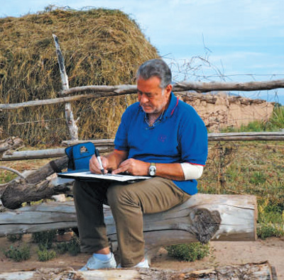 艾哈邁德·納瓦爾在新疆寫生。