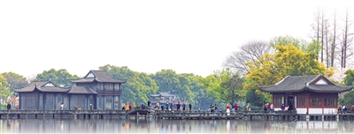 浙江杭州西湖景色優(yōu)美,游人如織。