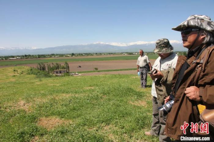 2018年春季在野外與烏茲別克斯坦考古學家討論。王建新 供圖