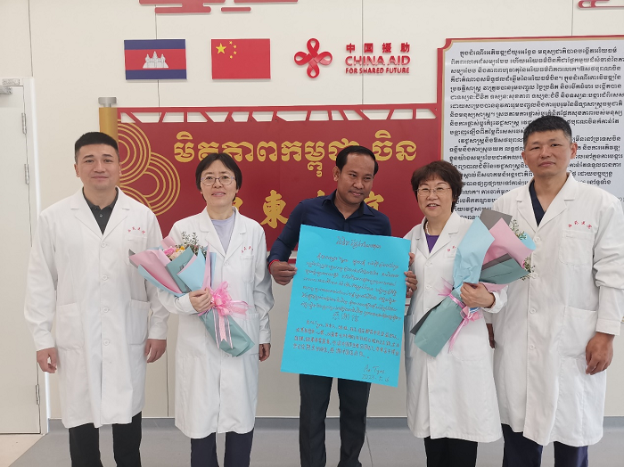 人民網(wǎng)曼谷5月16日電 (記者趙益普)16日,中國援柬中醫(yī)抗疫醫(yī)療隊在位于柬埔寨金邊的考斯瑪中柬友誼醫(yī)院舉辦“中醫(yī)門診開放日”活動,醫(yī)療隊為所有來門診的患者解疑、看診、贈送藥品。15日,中國援柬中醫(yī)抗疫醫(yī)療隊全體17名隊員獲得柬埔寨衛(wèi)生部頒發(fā)的柬埔寨王國騎士勛章。據(jù)悉,醫(yī)療隊已順利完成一年的任務,即將于近期返回中國。