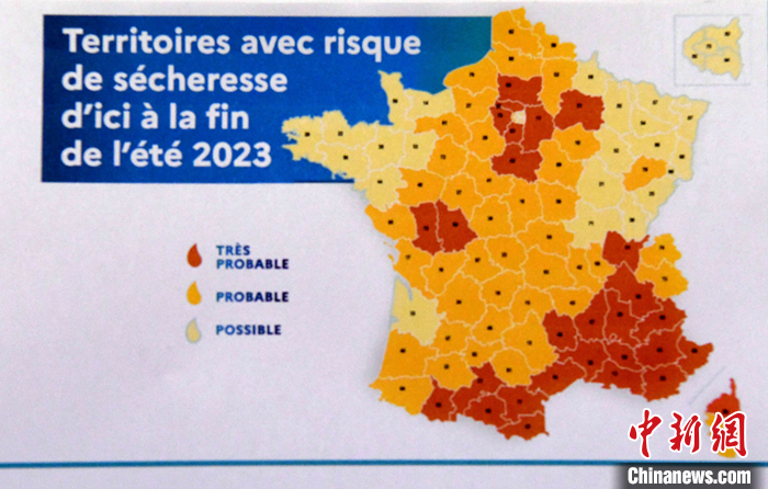 法國官方本周發(fā)表的一份最新報(bào)告顯示,法國今年炎熱干旱和水資源短缺問題可能比去年更加嚴(yán)重。報(bào)告公布的地圖標(biāo)明了今年夏季面臨干旱的省份。法國本土96個(gè)省份中有28個(gè)省份面臨很高的干旱風(fēng)險(xiǎn),這其中包括地中海沿岸多個(gè)省份和巴黎大區(qū)多個(gè)省份。 中新社記者 李洋 攝